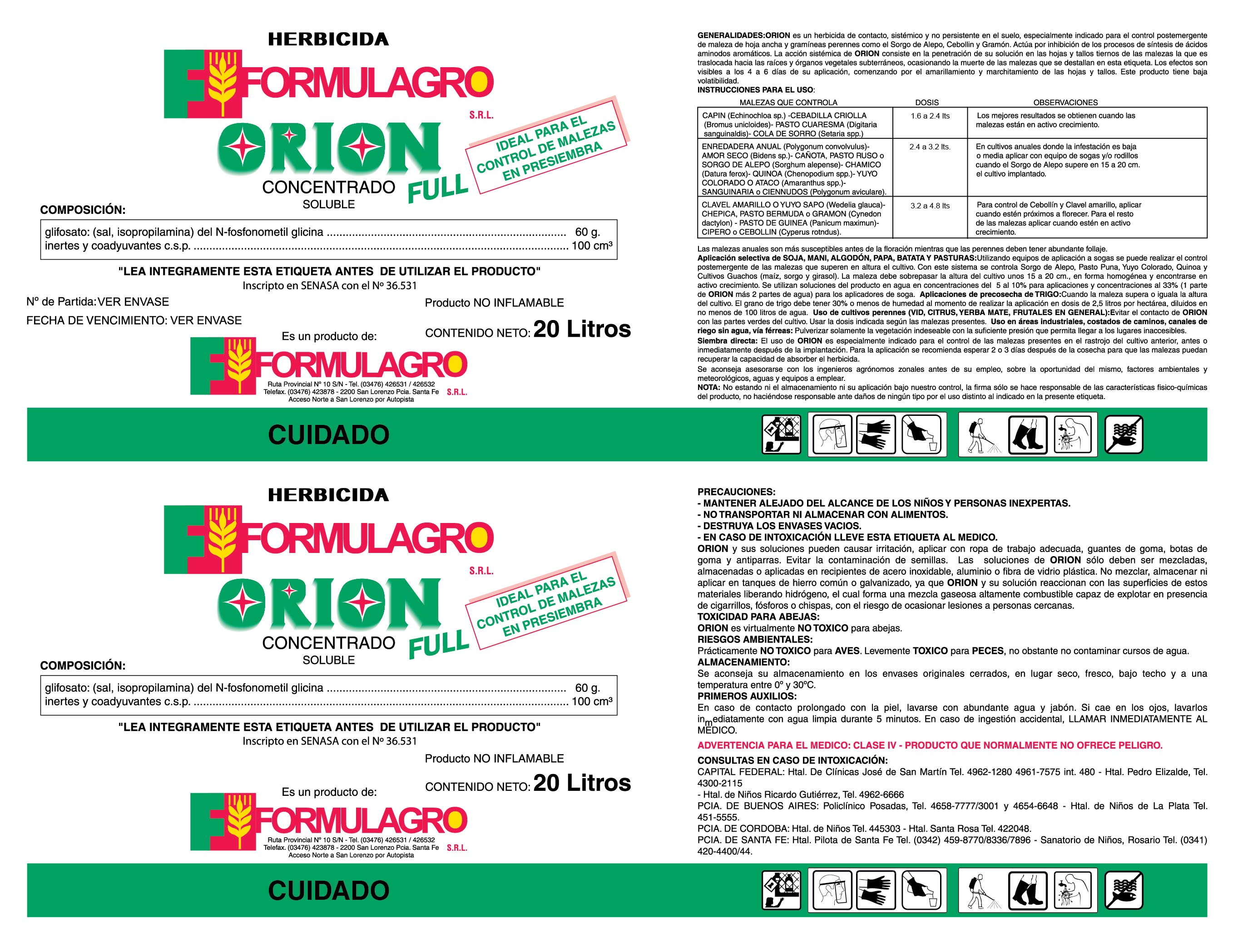 Herbicida de contacto, no selectivo, desecante, para el control de malezas en barbecho, en pre siembra de Soja y sobre los cultivos registrados como desecantes.
